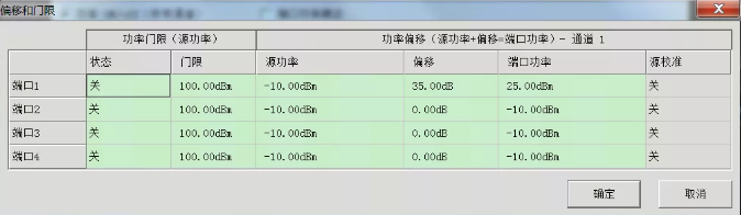 (3)設(shè)置功率偏移。網(wǎng)絡(luò)儀的源輸出功率經(jīng)由放大器放大后進(jìn)入被測(cè)件,實(shí)際輸出功率與設(shè)置功率存在偏差,因此需要設(shè)置功率偏移。
