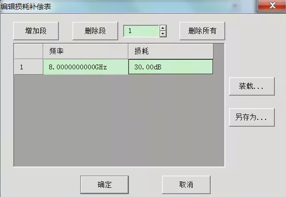 端口輸出功率超出功率計(jì)的額定功率,則需要在功率計(jì)前端接衰減器。衰減器的衰減值需要寫入損耗補(bǔ)償表。點(diǎn)擊【編輯損耗補(bǔ)償表】,根據(jù)源功率校準(zhǔn)時(shí)功率計(jì)前方所需的衰減器特性,增加損耗信息。