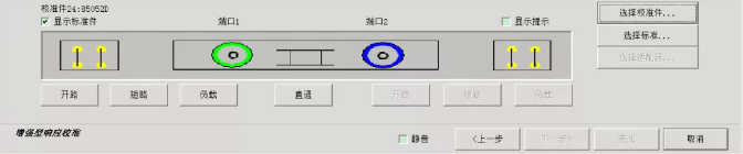 按照界面顯示,依次連接開路器、短路器和負(fù)載,最后將兩個(gè)端口直通,完成校準(zhǔn)步驟;
