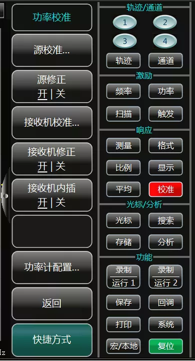 校準(zhǔn)結(jié)束,當(dāng)前程序中默認(rèn)接收機(jī)修正為關(guān)閉狀態(tài),測(cè)試時(shí)應(yīng)手動(dòng)打開,依次點(diǎn)擊【功率】→【更多】→【功率校準(zhǔn)】→【接收機(jī)修正】,打開接收機(jī)修正開關(guān)。