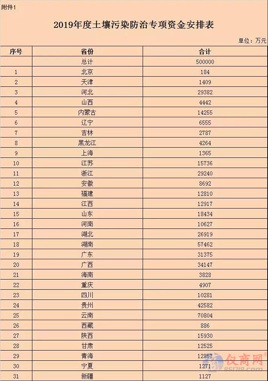 附件:1.2019年土壤污染防治專項(xiàng)資金安排表