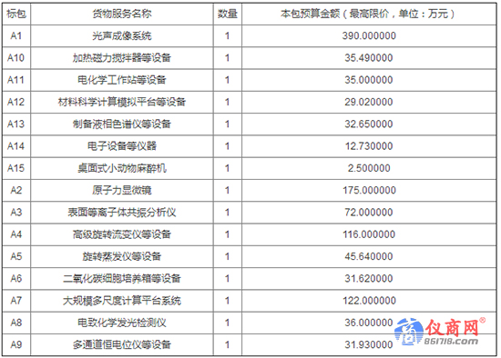 8月份以來,青島大學(xué)陸續(xù)發(fā)布十余項(xiàng)招標(biāo)公告,預(yù)算5018.805萬采購(gòu)一系列儀器設(shè)備,包括穩(wěn)態(tài)瞬態(tài)熒光光譜儀、研究級(jí)倒置熒光顯微鏡、超微量紫外可見分光光度計(jì)、高速冷凍離心機(jī) 、制備液相色譜儀、原子力顯微鏡 、表面等離子體共振分析儀等。