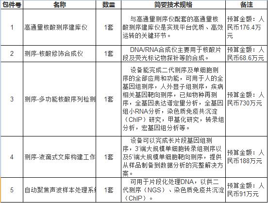 采購內(nèi)容:高通量核酸測(cè)序建庫儀、測(cè)序-核酸修飾合成儀、測(cè)序-多功能核酸序列檢測(cè)系統(tǒng)、測(cè)序-液滴式文庫構(gòu)建工作站、自動(dòng)聚焦聲波樣本處理系統(tǒng)。