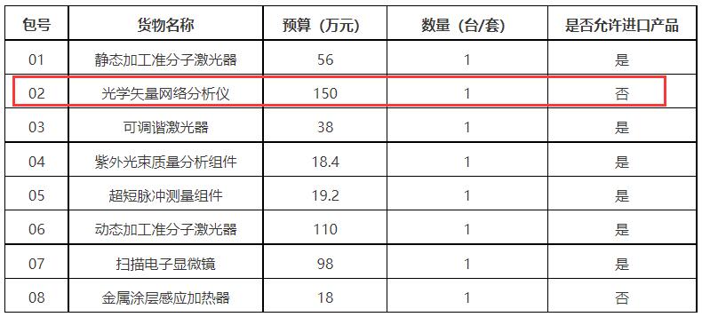 此外,在“武漢理工大學(xué)光纖加工及測(cè)試平臺(tái)采購(gòu)項(xiàng)目”中,武漢理工大學(xué)也有采購(gòu)光學(xué)矢量網(wǎng)絡(luò)分析儀的計(jì)劃。武漢理工大學(xué)擬采購(gòu)1(臺(tái)/套)光學(xué)矢量網(wǎng)絡(luò)分析儀,預(yù)算金額為150萬(wàn),不允許進(jìn)口產(chǎn)品。