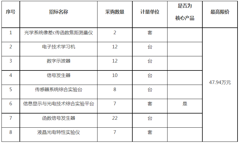 其中,汕頭大學(xué)擬采購一批數(shù)字示波器、信號發(fā)生器及函數(shù)信號發(fā)生器等一批儀器設(shè)備,該采購項目預(yù)算金額為47.94萬。