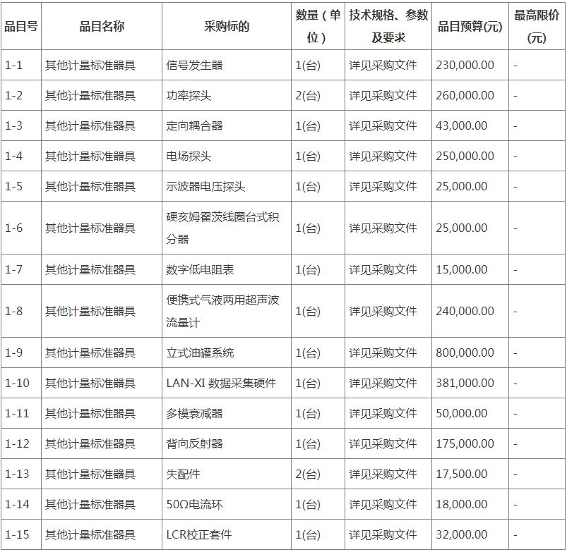 近日,中國(guó)政府采購(gòu)網(wǎng)發(fā)布了《廣東省計(jì)量科學(xué)研究院東莞計(jì)量院2022年先進(jìn)儀器設(shè)備采購(gòu)項(xiàng)目招標(biāo)公告》。公告內(nèi)容顯示,廣東省計(jì)量科學(xué)研究院東莞計(jì)量院擬采購(gòu)一批儀器設(shè)備,包括信號(hào)發(fā)生器、功率探頭、定向耦合器、電場(chǎng)探頭、示波器電壓探頭、硬亥姆霍茨線圈臺(tái)式積分器、數(shù)字低電阻表、便攜式氣液兩用超聲波流量計(jì)、立式油罐系統(tǒng)、LAN-XI 數(shù)據(jù)采集硬件、多模衰減器、背向反射器、失配件、50Ω電流環(huán)、 LCR校正套件,預(yù)算金額為256.15萬(wàn)元。