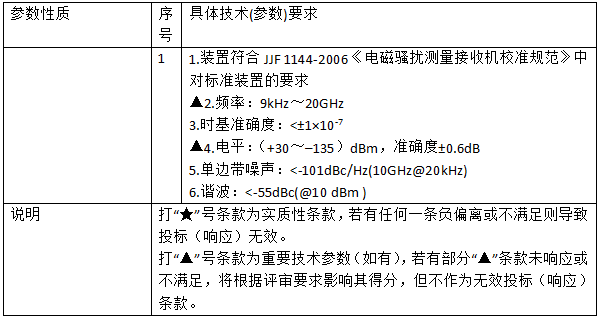 1.裝置符合JJF 1144-2006《電磁騷擾測(cè)量接收機(jī)校準(zhǔn)規(guī)范》中對(duì)標(biāo)準(zhǔn)裝置的要求