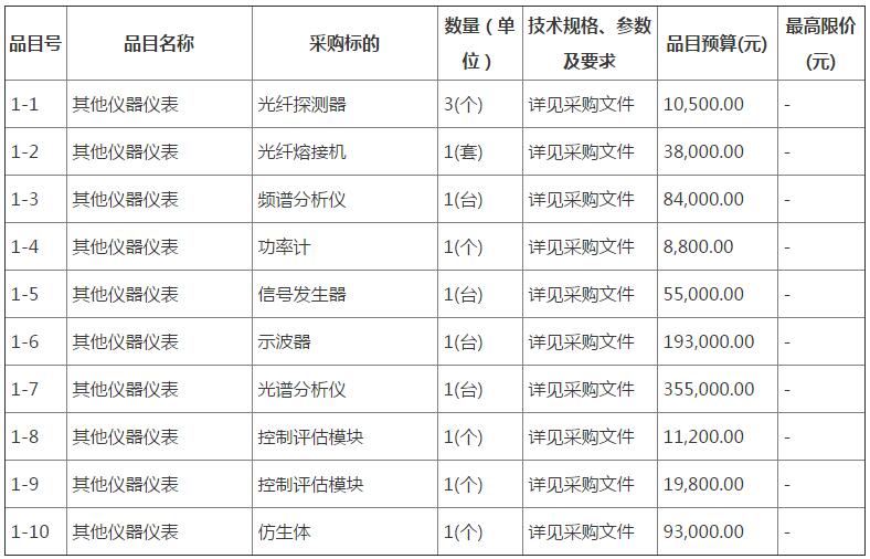 項目名稱與概況:特色學科建設項目,采購頻譜分析儀、功率計、信號發(fā)生器、示波器、光譜分析儀、光纖探測器、光纖熔接機等。