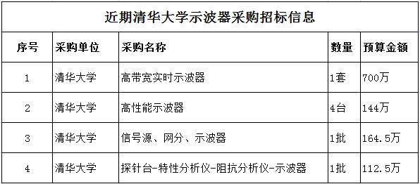 根據(jù)中國政府采購網(wǎng)發(fā)布的公告,清華大學(xué)近日有多個采購項目涉及示波器采購。