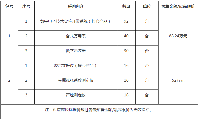 中南民族大學(xué)電子信息實(shí)驗教學(xué)中心設(shè)備更新項目擬通過競爭性磋商的采購方式,采購一批數(shù)字示波器、臺式萬用表、數(shù)字電子技術(shù)實(shí)驗開發(fā)系統(tǒng)、波爾共振儀、金屬線脹系數(shù)測定儀及聲速測定儀等,預(yù)算金額高達(dá)140.24萬元。
