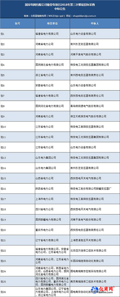 近日,國家電網(wǎng)有限公司輸變電項(xiàng)目2018年第三次整站招標(biāo)采購結(jié)果已經(jīng)發(fā)布,共有17家企業(yè)競得26包,至此2018年度的輸變電項(xiàng)目整站招標(biāo)已經(jīng)完成了75%。
