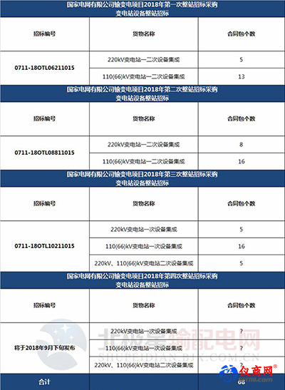 按照年初國家電網(wǎng)公司公布的2018年度公司集中采購計(jì)劃來看,2018年預(yù)安排中包括有四次“輸變電項(xiàng)目整站招標(biāo)”。