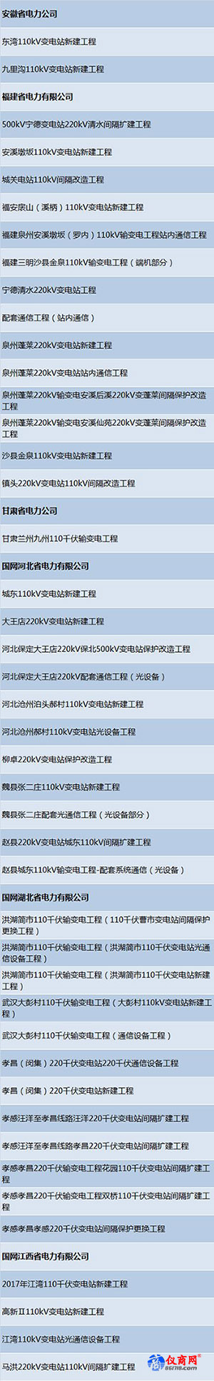 變電站整站招標(biāo) 各省工程項(xiàng)目匯總
