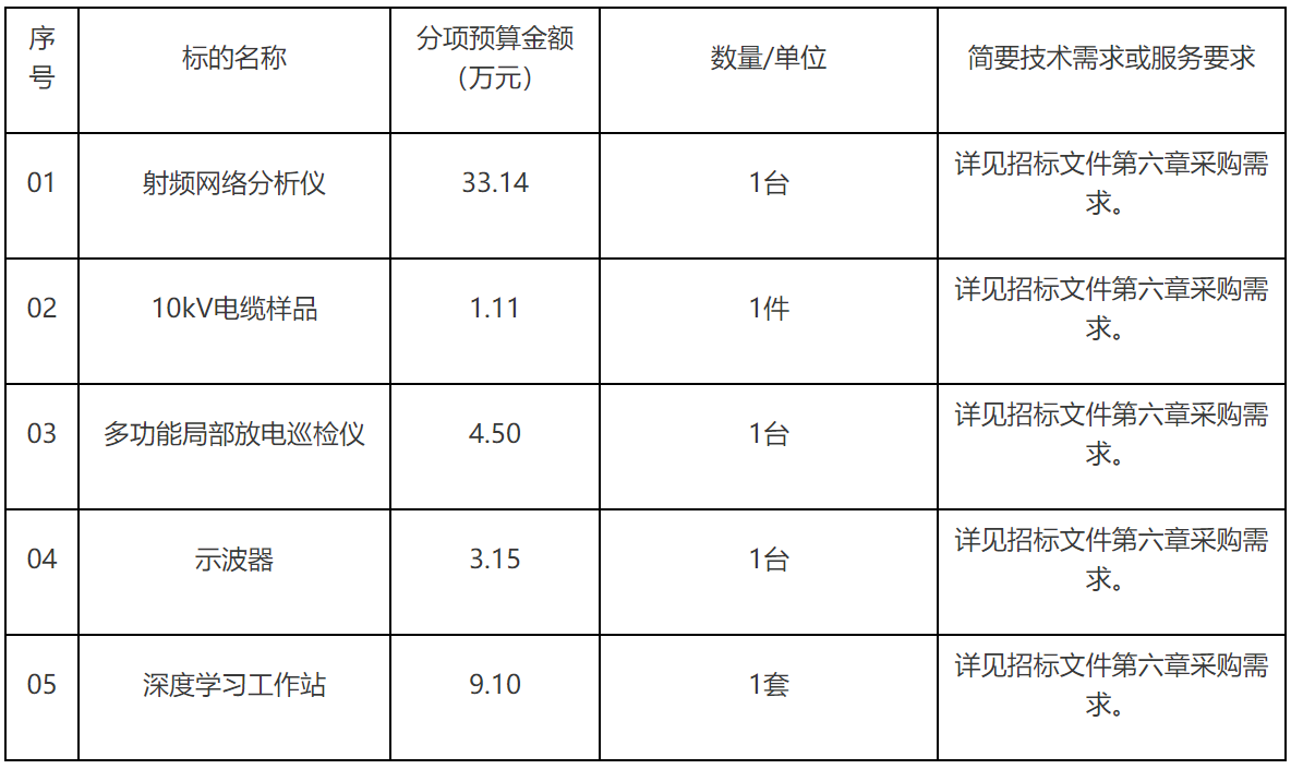 而北京交通大學(xué)擬采購(gòu)射頻網(wǎng)絡(luò)分析儀、10kV電纜樣品、多功能局部放電巡檢儀、示波器以及深度學(xué)習(xí)工作站,總預(yù)算金額51萬(wàn)元。其中,射頻網(wǎng)絡(luò)分析儀預(yù)算33.14萬(wàn)元,示波器預(yù)算3.15萬(wàn)元。