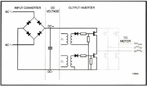 一種最常見的電動機(jī)驅(qū)動就是PWM變頻器,在這些變頻器 中,半導(dǎo)體開關(guān),例如可控硅或現(xiàn)在更常見的IGBT(雙門隔 離變換器),通過由微處理器控制的電路觸發(fā),從而產(chǎn)生穩(wěn)定 的電壓脈寬調(diào)制輸出來進(jìn)行電動機(jī)驅(qū)動。