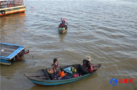 我們下午游覽了全東南亞最大淡水湖——洞里薩湖,整個湖近似南北走向長度大概是500公里,湖面寬窄不一,寬的時候我們誤以為是在大海中,窄的湖面只能容兩艘船經(jīng)過。它連接著柬埔寨國內(nèi)兩大城市:首都金邊和著名大小吳哥窟景區(qū)——暹粒。