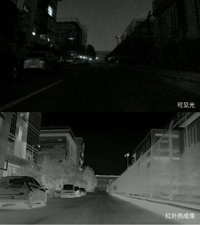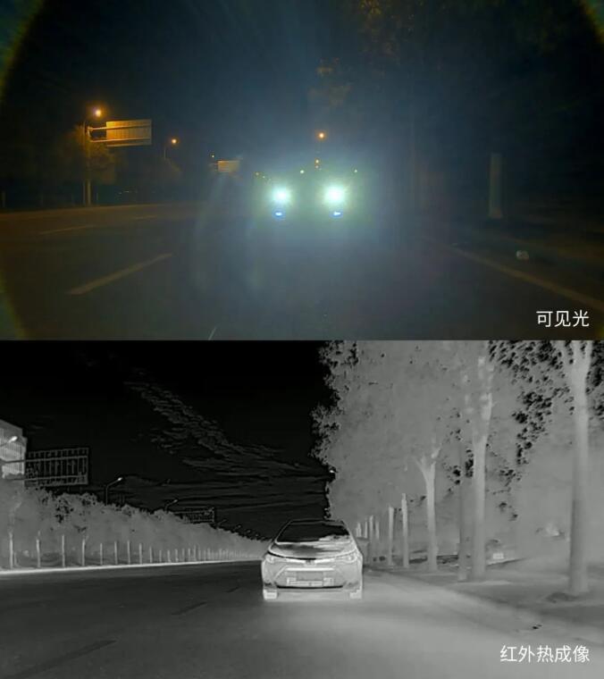 紅外熱成像在智能駕駛應(yīng)用場(chǎng)景中具有獨(dú)特優(yōu)勢(shì):穿透黑夜,增強(qiáng)駕駛員視野;不受光線變化影響,解決夜間會(huì)車(chē)眩光問(wèn)題;在大霧、霧霾、沙塵天氣下依舊可清晰成像,提升駕駛安全。