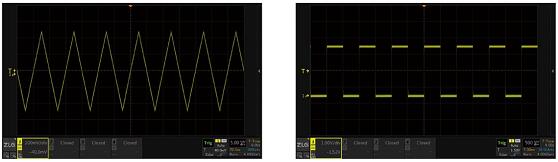 內(nèi)置雙通道函數(shù)信號發(fā)生器,支持正弦波、三角波、方波、鋸齒波等標準函數(shù)信號輸出,可調(diào)節(jié)信號初始相位、功能類型(掃頻、調(diào)制、猝發(fā))、占空比,頻率最高可達30MHz。