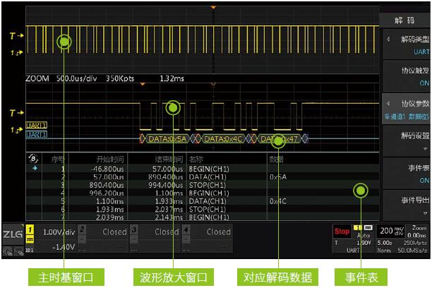 ZD5054D顛覆性地標配45種串行通信協(xié)議解碼,涵蓋常用的現(xiàn)場總線、系統(tǒng)總線以及內(nèi)部總線。3秒鐘即可完成512Mpts波形解碼,協(xié)助工程師快速完成通信調(diào)試。