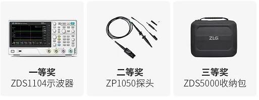 5月23日-6月30日,在ZLG致遠儀器微信公眾號發(fā)送“試用”,即可免費申請ZDS5000示波器試用機會,以及豪禮抽獎活動,獎品如下: