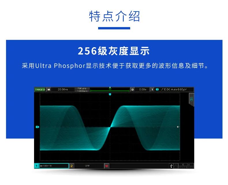 UPO1000CS系列采用并行數(shù)字信號(hào)處理技術(shù),提高了數(shù)據(jù)處理速度及波形捕獲速率,新創(chuàng)的Ultra Phosphor技術(shù)將被測(cè)信號(hào)頻率以類(lèi)似模擬示波器的多層次余輝呈現(xiàn),相較于傳統(tǒng)數(shù)字存儲(chǔ)示波器, 數(shù)字熒光示波器的余輝效果能更好呈現(xiàn)出振幅、時(shí)間和信號(hào)強(qiáng)度的三維波形數(shù)據(jù)。