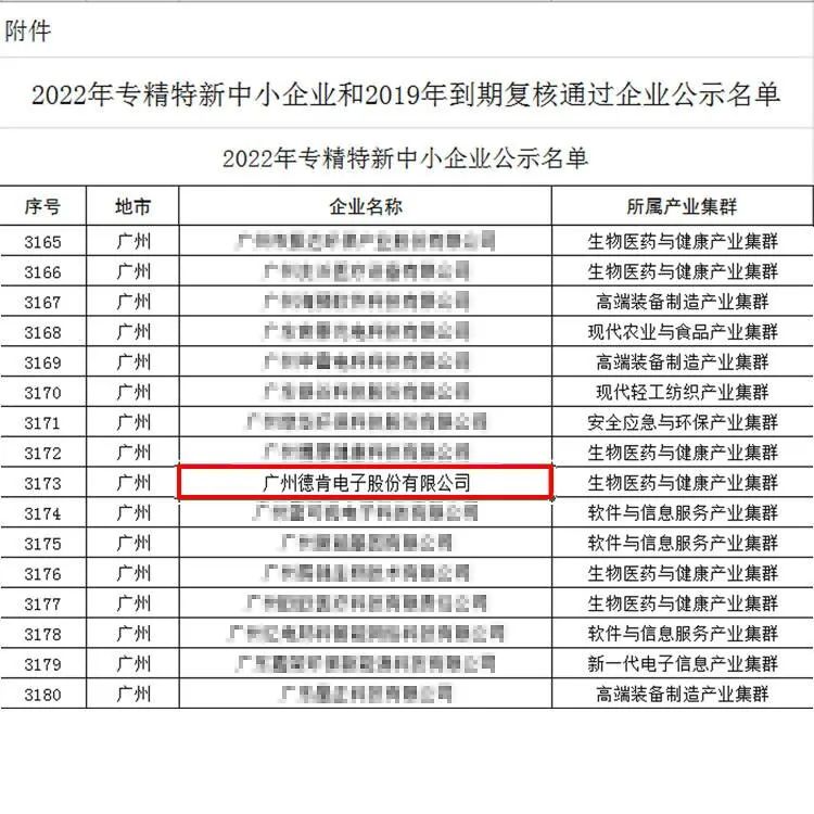 為深入貫徹習近平總書記關于“培育一批‘專精特新’中小企業(yè)”的重要指示精神,落實工業(yè)和信息化部《優(yōu)質中小企業(yè)梯度培育管理暫行辦法》,廣東省工業(yè)和信息化廳組織開展了2022年專精特新中小企業(yè)申報和2019年到期復核企業(yè)的相關審核工作。廣州德肯電子股份有限公司成功被認定為2022年專精特新中小企業(yè)。