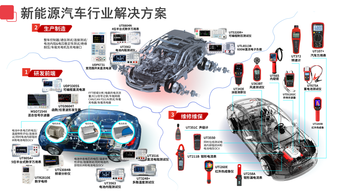 近年來,受益于國家政策和下游市場需求的雙重驅(qū)動,新能源發(fā)展駛?cè)肟燔嚨?。?yōu)利德積極響應(yīng)政策和市場需求,全方位布局新能源領(lǐng)域。目前,優(yōu)利德針對新能源汽車的研發(fā)、生產(chǎn)、維修保養(yǎng)等場景推出絕緣電阻測試儀、絕緣萬用表、絕緣鉗形表等一系列產(chǎn)品,并推出《優(yōu)利德新能源汽車行業(yè)解決方案》。