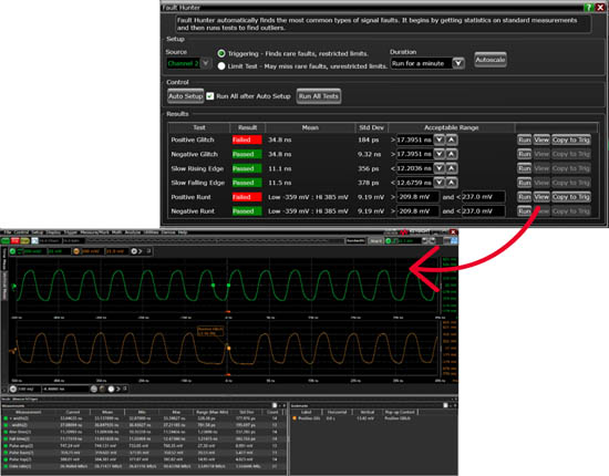 值得關(guān)注的是,這是故障獵人概念首次入駐EXR系列示波器,目前也僅有是德科技擁有此項(xiàng)功能。用戶在使用時(shí),只需按下兩個(gè)按鈕,Autoscale與Auto Setup,示波器便會(huì)開始自動(dòng)進(jìn)行深度學(xué)習(xí),先學(xué)習(xí)被測(cè)信號(hào),在對(duì)被測(cè)信號(hào)進(jìn)行大量測(cè)量,得出關(guān)鍵參數(shù)的統(tǒng)計(jì)特征,分析信號(hào)的正常參數(shù)范圍,然后找出偶發(fā)的異常參數(shù)。