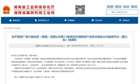 湖南廣電計量入選省產(chǎn)業(yè)技術(shù)基礎(chǔ)公共服務(wù)平臺