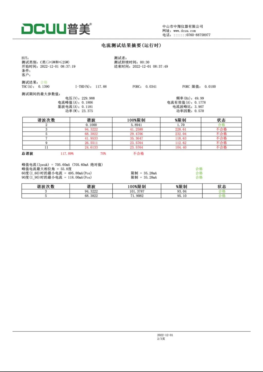 國際照明電工委員會對EMC電磁兼容關(guān)于≤16A諧波的IEC61000-3-2標(biāo)準(zhǔn),于2019年重新修訂后在2020年發(fā)布,并于2022年3月1日起強(qiáng)制執(zhí)行。國標(biāo)GB17625.1也在2022年12月29日發(fā)布新版,并要求在2024年7月1日實(shí)施。之前最老的標(biāo)準(zhǔn)是25W以上的照明電器需要測試諧,而現(xiàn)在5∽25瓦的電器(當(dāng)然包括我們LED驅(qū)動電源及適配器)也要測試諧波。因?yàn)橹皩?shí)驗(yàn)室買的設(shè)備由于并沒有要求測試25W以下的電器產(chǎn)品,電流量程并沒有覆蓋25W以下特別是幾瓦的產(chǎn)品,所以會造成誤判,因此實(shí)驗(yàn)室都應(yīng)該要更新測量儀器以滿足新標(biāo)準(zhǔn)的測量需求。