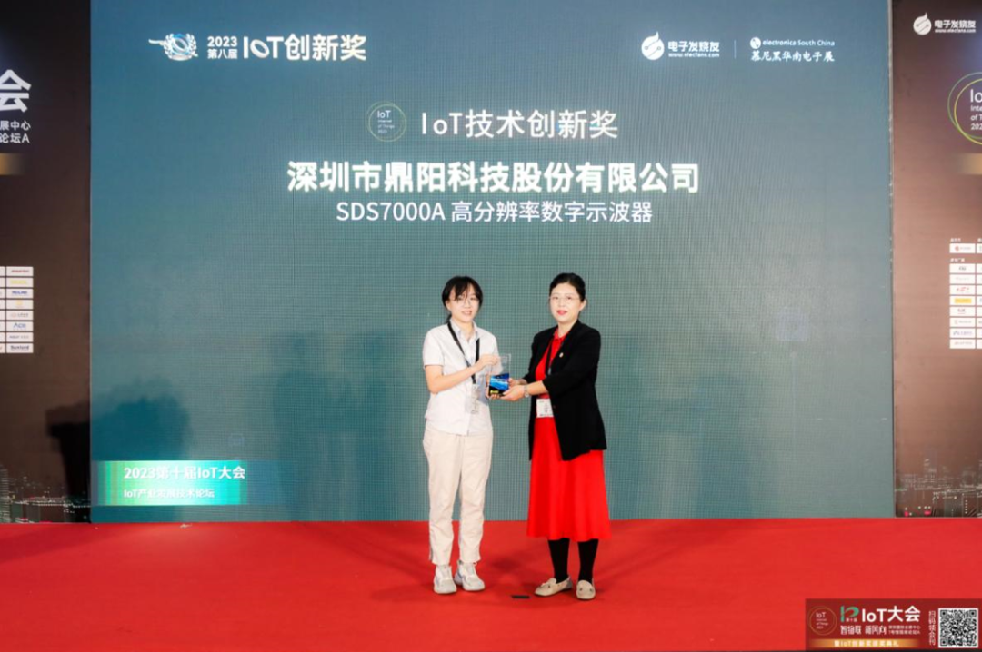 鼎陽科技SDS7000A系列高分辨率數(shù)字示波器以自身強(qiáng)悍的性能參數(shù)和豐富的實(shí)踐案例摘得本屆“IoT技術(shù)創(chuàng)新獎(jiǎng)”桂冠,贏得現(xiàn)場觀眾認(rèn)可的掌聲。