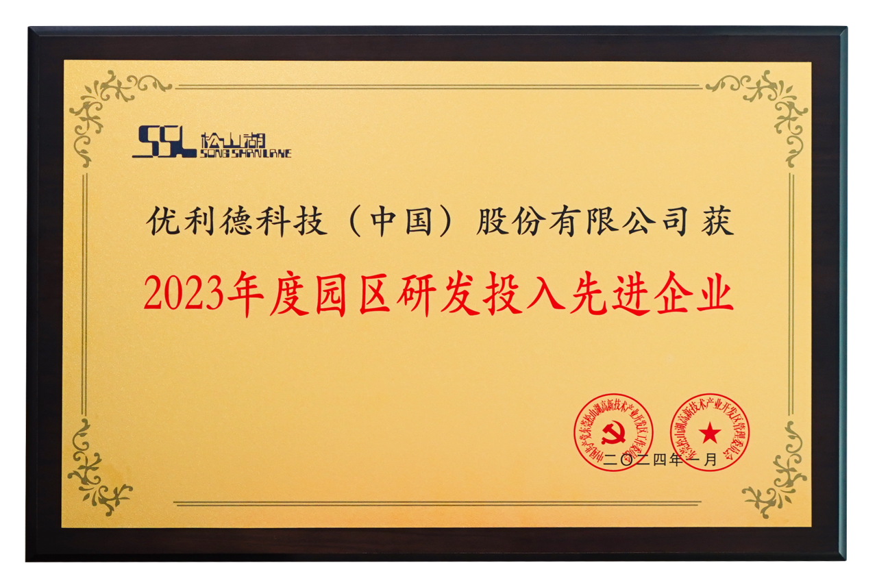2024年2月2日,松山湖召開2023年度工作總結(jié)大會,會議對做出突出貢獻的單位進行了表彰,優(yōu)利德科技(中國)股份有限公司榮獲“2023年度園區(qū)研發(fā)投入先進企業(yè)”殊榮,這一榮譽是對優(yōu)利德在技術(shù)研發(fā)、創(chuàng)新成果轉(zhuǎn)化和應(yīng)用等方面的高度認可。