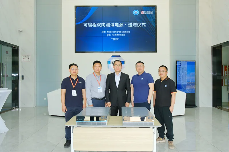 此次送贈(zèng)儀式得到了雙方領(lǐng)導(dǎo)的高度重視,TüV南德大中華區(qū)、工業(yè)產(chǎn)品部領(lǐng)導(dǎo)及實(shí)驗(yàn)室經(jīng)理,愛科賽博深圳分公司經(jīng)理、渠道經(jīng)理均出席了送贈(zèng)儀式。希望通過此次送贈(zèng)活動(dòng),能夠進(jìn)一步加強(qiáng)雙方在電源測試領(lǐng)域的交流與合作,愛科賽博將為TüV南德廣州測試中心提供更加精準(zhǔn)、高效的電源測試產(chǎn)品、測試系統(tǒng)和解決方案,助力其在新的發(fā)展階段取得更加輝煌的業(yè)績。