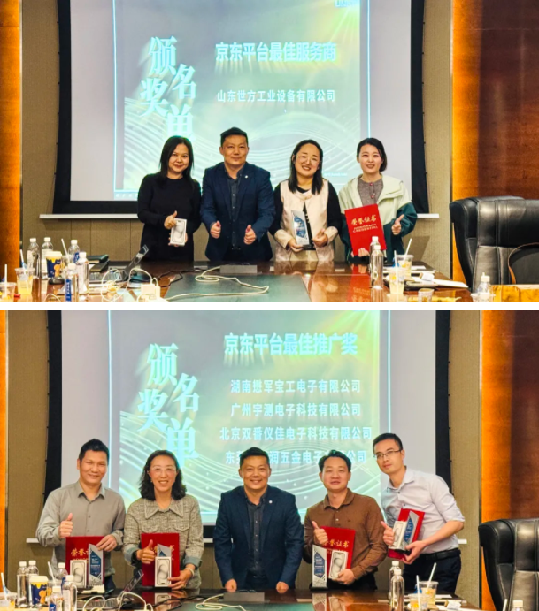 為表彰在京東平臺上表現(xiàn)出色的代理商,會議特別安排了頒獎儀式。其中,山東世方工業(yè)設(shè)備有限公司榮獲“京東平臺最佳服務(wù)商”稱號;湖南懋軍寶工電子有限公司、廣州宇測電子科技有限公司、北京雙番儀佳電子科技有限公司、東莞市亞潤五金電子有限公司則分別被授予“京東平臺最佳推廣獎”。這些獎項,不僅是對代理商辛勤付出的肯定,更是對未來合作的期許和激勵。