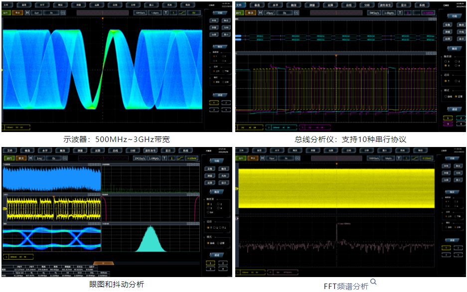 4457M系列數(shù)字示波器具有串行總線觸發(fā)與分析、眼圖與抖動分析、極限模板測試、功率測量與分析、波形錄制與回放、波形直方圖統(tǒng)計等功能,多達8個模擬通道,幫助用戶應(yīng)對更多測試挑戰(zhàn)。