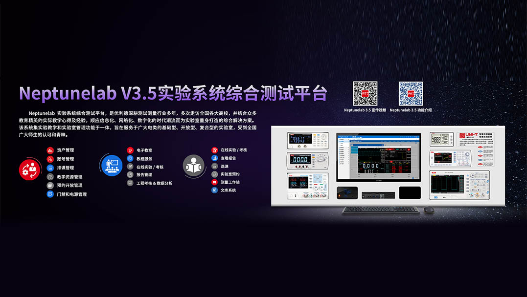 NeptuneLab V3.5實驗系統(tǒng)綜合測試平臺和SaturnLab PES-1000A/3000A電力電子模型開發(fā)與實訓系統(tǒng)是優(yōu)利德服務高等教育的兩套核心解決方案。NeptuneLab V3.5配套了數(shù)字示波器、函數(shù)/任意波形發(fā)生器、可編程直流穩(wěn)壓電源、數(shù)字萬用表、數(shù)字交流毫伏表等可以滿足實驗室各種測試需求的測試測量儀器儀表。系統(tǒng)形成了實驗室管理、老師教學、學生學習三個方向的分層次、多模塊、相互銜接的實踐教學體系,以虛實結合、以虛控實的實踐教學模式,為學生提供了一個數(shù)字化、開放性、個體化的學習環(huán)境。