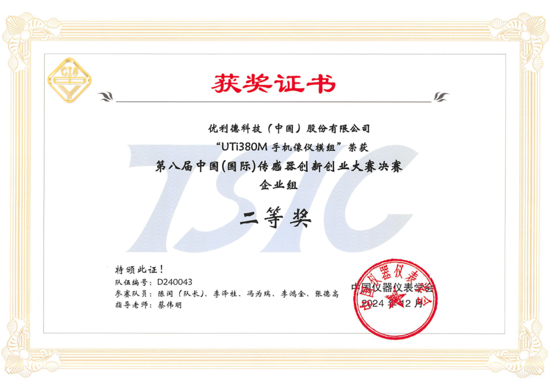 12月1日,備受關注的2024世界傳感器大會在鄭州盛大開幕,活動同期舉辦了第八屆中國(國際)傳感器創(chuàng)新創(chuàng)業(yè)大賽總決賽。在這個競技的舞臺上,優(yōu)利德自主研發(fā)的UTi380M紅外熱成像手機模組以其突出的創(chuàng)新性與實用性贏得評審團的充分肯定,并榮獲大賽二等獎,可喜可賀!