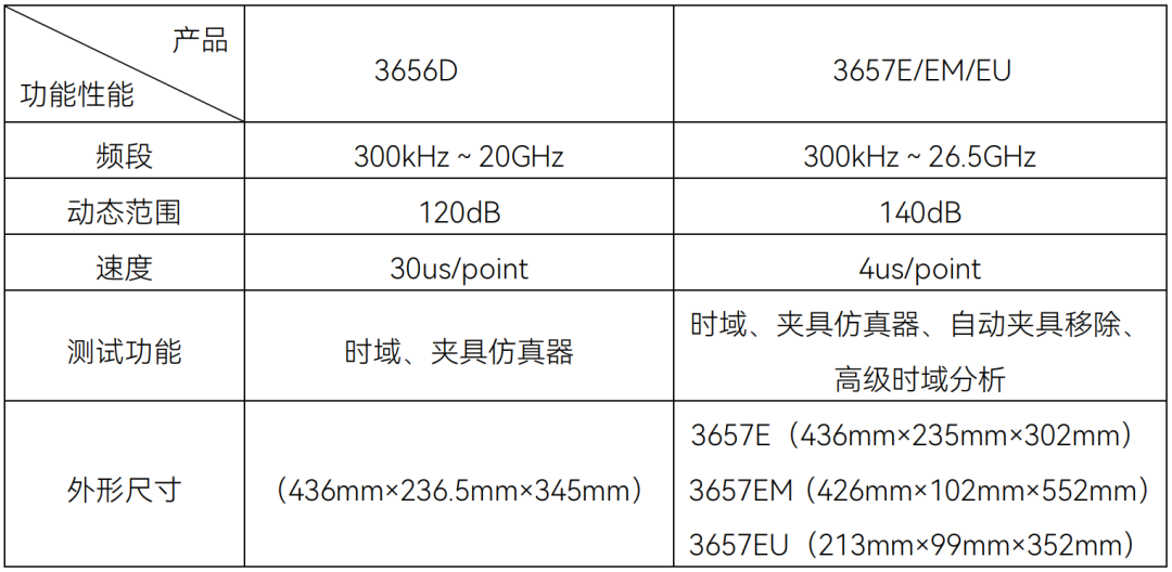 新推出的產(chǎn)品在頻率擴(kuò)展的基礎(chǔ)上有效傳承了Ceyear3657B最核心的性能,4us/point的極限掃描速度、最大140dB的動(dòng)態(tài)范圍,能夠在芯片自動(dòng)化生產(chǎn)測(cè)試、大型腔體濾波器調(diào)試中大幅度提升測(cè)試效率,降低客戶的生產(chǎn)制造成本;具備臺(tái)式(3657E)、上架式(3657EM)、USB(3657EU)三種形態(tài),滿足不同場(chǎng)景測(cè)試需求,豐富了產(chǎn)品矩陣。