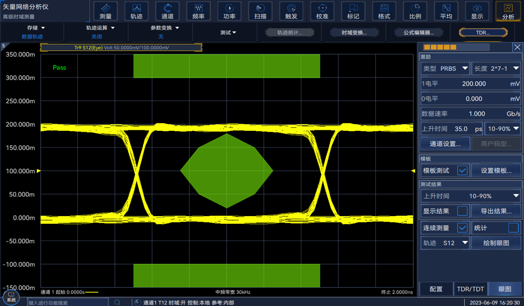 高級(jí)時(shí)域分析功能基于網(wǎng)絡(luò)參數(shù)的虛擬眼圖生成及分析,可以在仿真眼圖上施加抖動(dòng)、噪聲等干擾,通過預(yù)加重和均衡等校正算法的加入,模擬真實(shí)環(huán)境下高速鏈路不同位置的仿真眼圖。