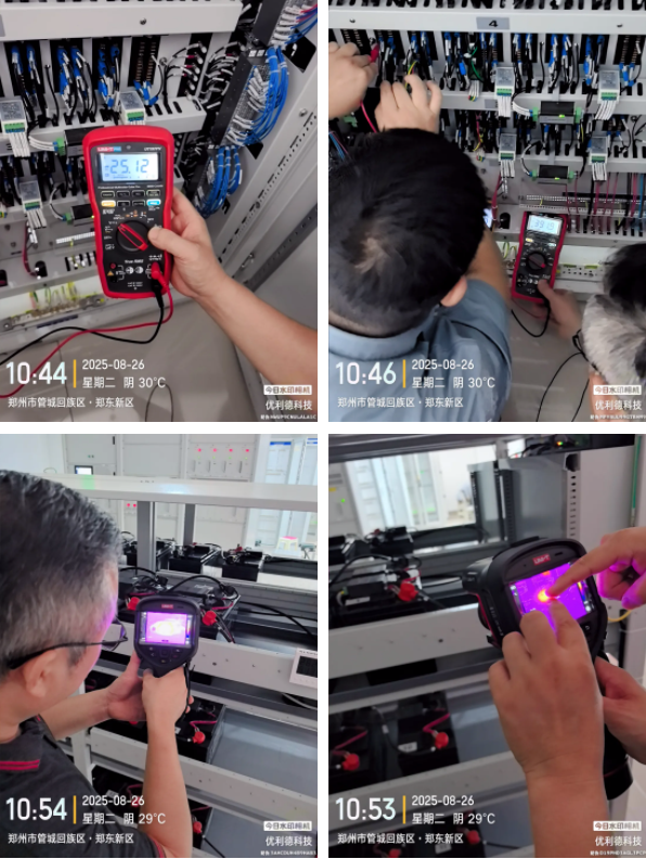 在UPS蓄電池組測溫環(huán)節(jié),優(yōu)利德則采用UTi640J智能型紅外熱成像儀進行紅外掃描。UTi640J具備640*480紅外像素(可超分辨率至1280*960)、1300萬可見光鏡頭,可精準識別電池組間的溫度差異,快速定位異常發(fā)熱單元。同時,產(chǎn)品支持圖像導出與報告生成,便于數(shù)據(jù)歸檔與趨勢分析。客戶表示,該方案可與現(xiàn)有在線溫度監(jiān)測系統(tǒng)互為補充,實現(xiàn)周期性巡檢與長期隱患排查的有機結(jié)合,顯著提升電池系統(tǒng)運行的安全性與可靠性,進而保障鄭州地鐵8號線供電系統(tǒng)的穩(wěn)定運行。