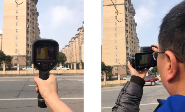 上海閔行區(qū)的浦江某小區(qū):該小區(qū)出現(xiàn)了多個(gè)住宅樓外墻發(fā)生空鼓,粉刷層局部掉落,存在安全隱患,急需找到建筑隱患的位置,進(jìn)行修補(bǔ)。這一年春天上海連續(xù)降雨,我們幸運(yùn)的趕上了一個(gè)難得的晴天。測量時(shí)間選擇在上午9點(diǎn)。測量儀器為FLIR T600紅外熱像儀(紅外分辨率480*360)和FLIR E8-XT(紅外分辨率320*240)。