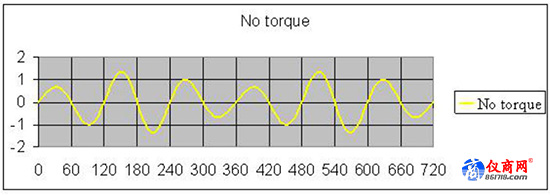 在M-type力矩控制作用下,變頻器輸出恒定的力矩,電動機相電流波形峰值下降,降低了諧波與功率損耗,降低了系統(tǒng)噪音。下圖為M-type力矩控制時的電動機相電流波形與沒有力矩控制是的電動機相電流的比較。