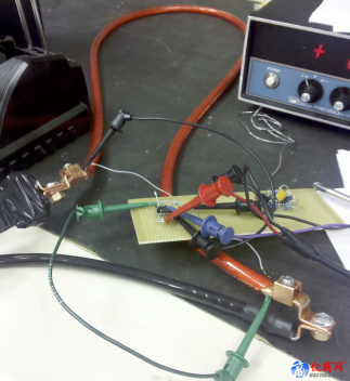 圖2:測(cè)試裝備。由于感測(cè)線長(zhǎng)度影響絕對(duì)精度,因此將其連接到電路板的兩根灰色電線為較重規(guī)格。