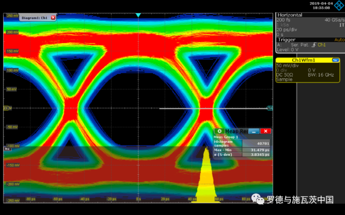對(duì)于高速數(shù)據(jù)傳輸,不僅要檢測(cè)發(fā)送端的信號(hào)質(zhì)量,接收端的信號(hào)質(zhì)量也屬于必測(cè)項(xiàng)。尤其是PCIe 3.0的數(shù)據(jù)傳輸速率已經(jīng)達(dá)到8.0 GT / s,為了確保整個(gè)系統(tǒng)的正常工作,通常用眼圖模板測(cè)試和直方圖來(lái)表征信號(hào)傳輸?shù)馁|(zhì)量。借助RTP示波器,模板測(cè)試和直方圖顯示基于硬件加速完成,可以快速提供準(zhǔn)確統(tǒng)計(jì)結(jié)果,并且快速確定信號(hào)異常和意外結(jié)果。這個(gè)測(cè)試只需幾個(gè)步驟,用戶就能直接在顯示器上定義新模板,每個(gè)模板最多包括八個(gè)分段。RTP示波器的直方圖適用于輸入信號(hào)電平(垂直)或時(shí)基轉(zhuǎn)換處(水平),以便分析噪聲和抖動(dòng)。每個(gè)直方圖的統(tǒng)計(jì)數(shù)據(jù)可與其他測(cè)量功能一起顯示。