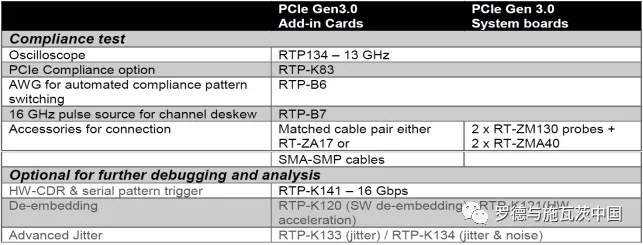 針對(duì)PCIe3.0測(cè)試,R&S同樣給出了推薦配置: