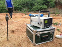 室內(nèi)環(huán)境污染受到土壤氡的影響非常嚴重,測量過程中必須規(guī)范操作,保持一致的測量深度,通常為600-800mm,并且嚴格控制成孔條件。采樣孔徑不能太大,通常以20-40mm比較合適,這樣能夠更好地滿足采樣管道孔腔體內(nèi)采樣氣體體積的需要。測量同樣對環(huán)境濕度和溫度有著很高的要求,按10米網(wǎng)格取樣的測試時間通常會選擇在8:00-18:00之間,雨天不能開展現(xiàn)場取樣測試工作,必須要在雨后24小時之后才能開展相關(guān)工作。現(xiàn)場測試必須針對相關(guān)測試內(nèi)容進行詳細記錄,具體包括現(xiàn)場地表狀況描述、成孔點土壤類別、測試點布設(shè)圖、測試前24小時以內(nèi)工程地點的氣象狀況等。野外作業(yè)常用儀器為FD-3017測氡儀,使用之前須先進行檢查確保儀器不漏氣,取樣器是專用的,頭部帶有氣孔,抽氣時須插入打好的孔中進行,經(jīng)干燥器抽入筒內(nèi)的氡射氣衰變后產(chǎn)生新的子體-RaA,初期形成瞬間是帶正電的離子。