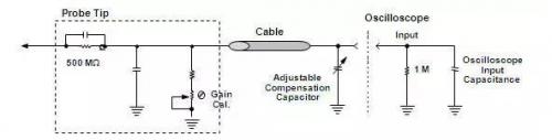 無源探頭細(xì)分:低阻電阻分壓探頭、帶補(bǔ)償?shù)母咦锜o源探頭(最常用的無源探頭)、高壓探頭。