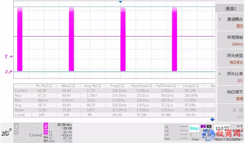 圖2 輸出短路時MOS管波形Vds_max=67.2V