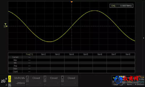 參數(shù)測量頻率計是基于存儲之后的波形信號進行的測量,受限于觸發(fā),受限于屏幕是否有波形,因為示波器的測量功能只對屏幕內(nèi)的波形進行測量統(tǒng)計,所以當(dāng)屏幕上出現(xiàn)的波形不足一個周期時,頻率信息便不會獲得。參數(shù)測量頻率計是基于測周算法,先得出信號周期,然后將周期換算成頻率。
