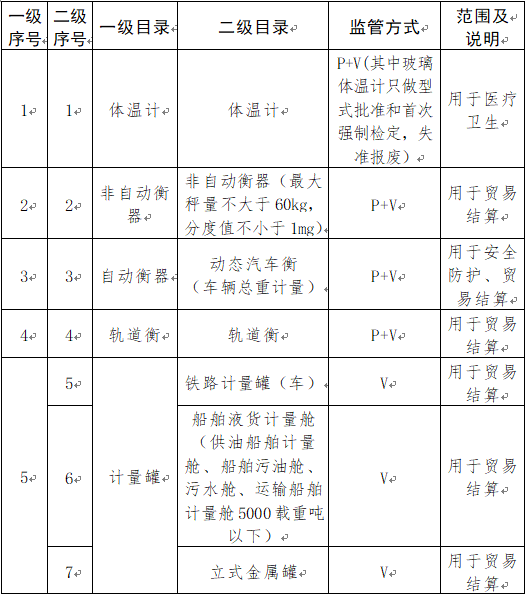 《實(shí)施強(qiáng)制管理的計(jì)量器具目錄》如下: